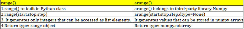 arange function is used to create sequence of numbers similar to Python built-in range function,but returns an array.