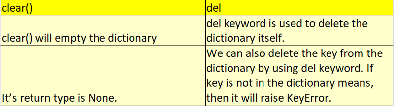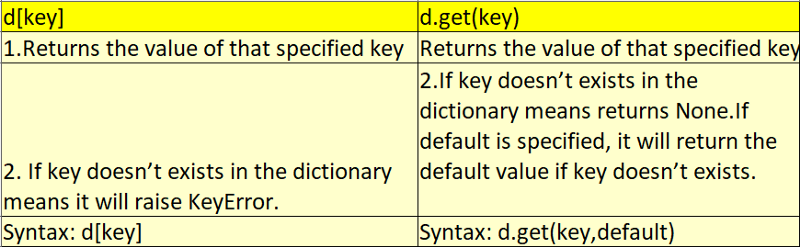 - If the key is in the dictionary means, it will update the new value.Update() function won’t return any value.