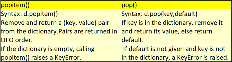 #Output:KeyError: 'popitem(): dictionary is empty'