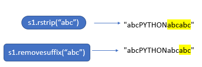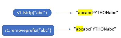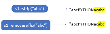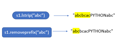 lstrip,rstrip → the characters are repeatedly removed from the beginning/end of the string. - The parameter for removeprefix() and removesuffix() is mandatory.But for lstrip() and rstrip(),it’s not mandatory.