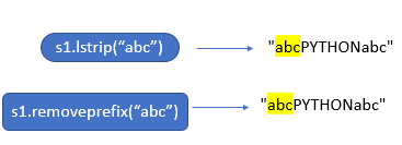 s1=" PYTHON" print (s1.lstrip()) #Output:PYTHON print (s1.removeprefix()) #Output:TypeError: str.removeprefix() takes exactly one argument (0 given)
