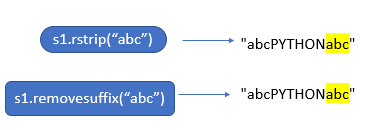 Example 2: The parameters of removesuffix() are considered as a substring. But parameters of rstrip() are considered as a set of characters.
