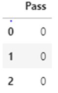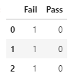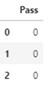 In Pass column, 0 indicates Fail and 1 indicates Pass.