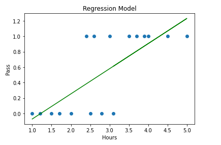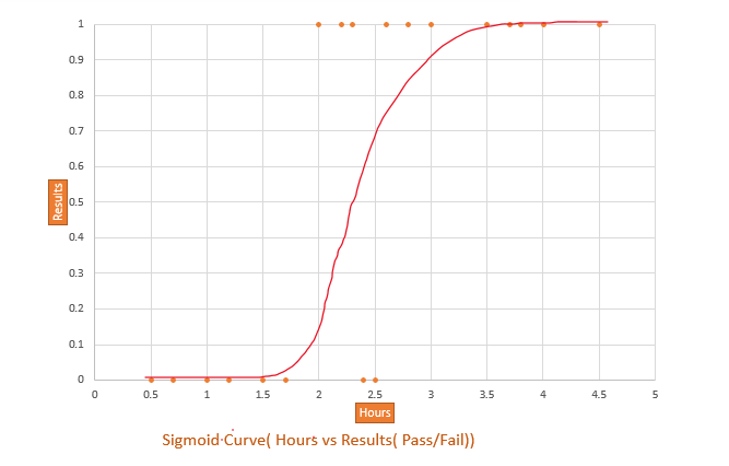 From the data points, we can interpret that more the study hours the results tend be to be 1 (Pass).