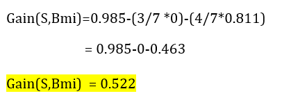 We have to choose the attribute which has high information gain. In our example, only the BMI attribute has high information gain. So the BMI attribute is chosen as the splitting variable.
