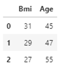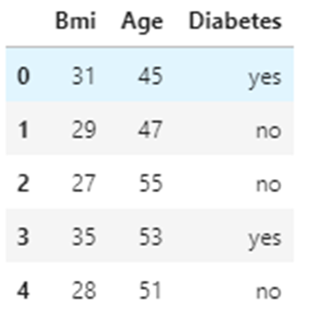 I have taken a small data set that contains the features BMI and Age and the target variable Diabetes.