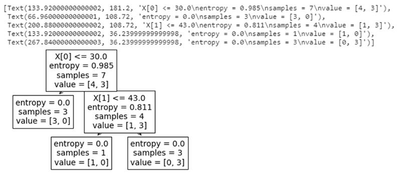 from sklearn import tree model=tree.DecisionTreeClassifier(criterion="entropy") model.fit(x,y)