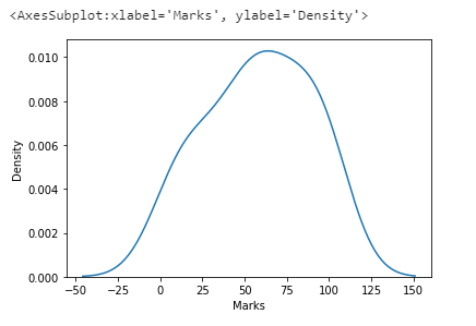 sns.distplot(df[“Marks”],hist=False)