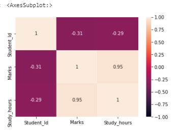 If the correlation is 1 or near to 1, two variables are strongly correlated. In this dataset, “Marks” and “Study_hours” have a strong correlation.