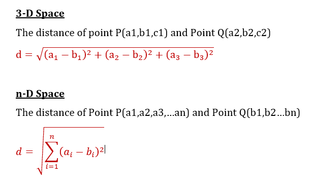 Likewise, we can extend the formula to 3-D space and n-D space.