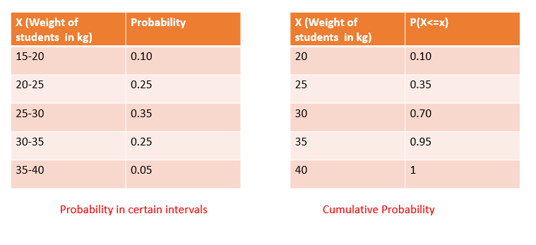 Example: Suppose let’s calculate the probability of weight of students in a class.