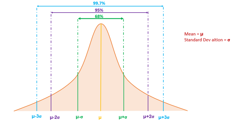 - 99.7% of values of a random variable fall within 3 standard deviations of its mean.