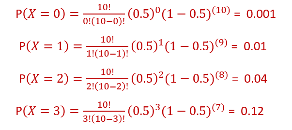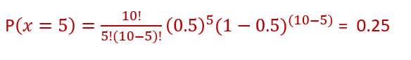 Using this formula, let’s calculate the probability of getting exactly 5 heads while tossing a coin 10 times.
