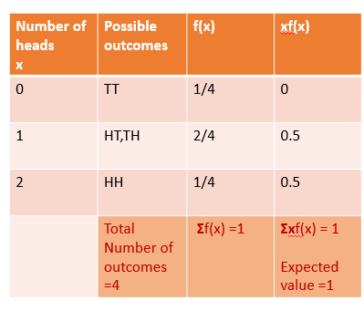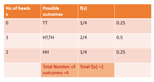 P(X=2) → Probability of getting two head while tossing two coins = 1/4