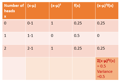 Var(x) = σ² =Σ(x-μ)²f(x)