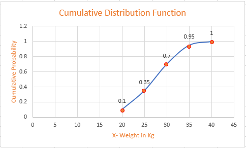 Let’s plot the cumulative probability of X(weight of students ) vs X (weight of students)