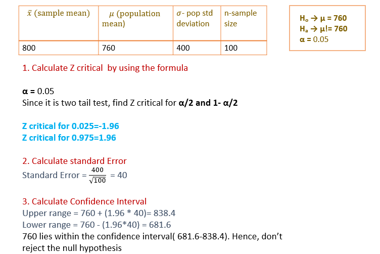 In this article, I have covered the steps to perform hypothesis testing using different methods [ p-value, critical value, confidence interval method].