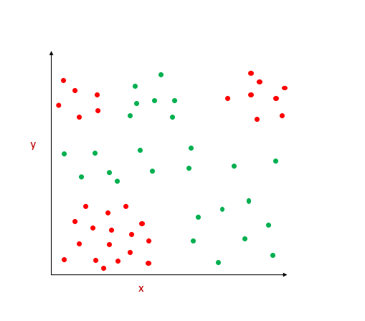 Suppose we have data points that are difficult to be linearly classified, the decision tree comes with an easy way to make the decision boundary.
