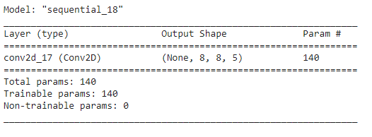 model2=keras.models.Sequential() model2.add(Conv2D(filters=5,kernel_size=3,input_shape=(10,10,1),activation='relu')) model2.summary()