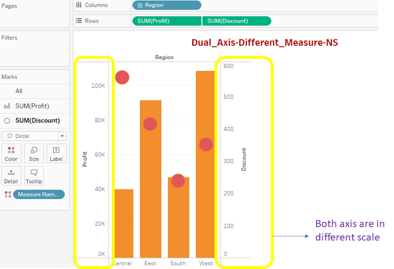 If we want to check Profit vs Discount for each Region, no need to synchronize the axis. Since both scales are different.